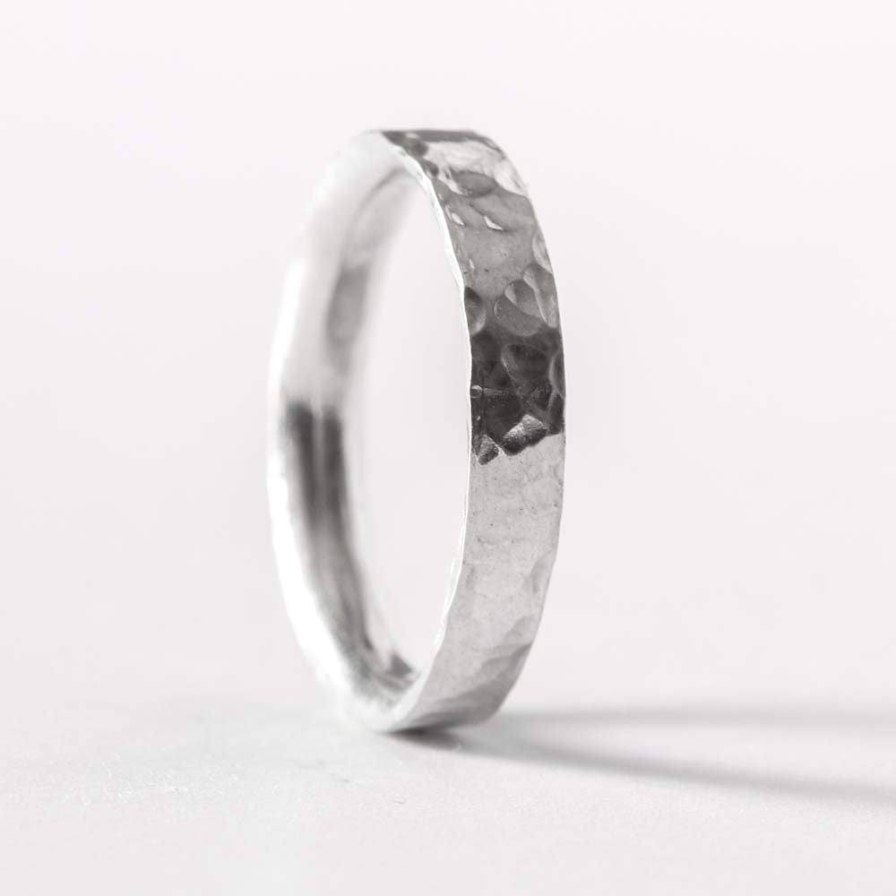 This ring band has a hammered texture with a width of 4mm and a thickness of 1.3mm.